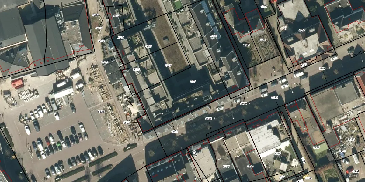 Het perceel waarop Marktstaete 19 staat heeft een oppervlakte van 1375 m². Dit is een zeer groot perceel. De perceeloppervlakte wordt geregistreerd door het Kadaster. Gedetailleerde informatie over de maten van dit perceel kunt u vinden in het rapport Kadastrale kaart met maatvoering van Marktstaete 19.