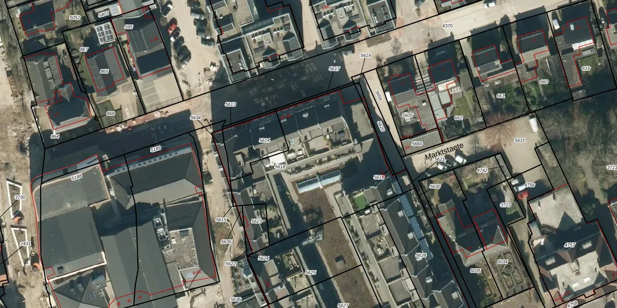 Het perceel waarop Marktstaete 32 staat heeft een oppervlakte van 1567 m². Dit is een zeer groot perceel. De perceeloppervlakte wordt geregistreerd door het Kadaster. Gedetailleerde informatie over de maten van dit perceel kunt u vinden in het rapport Kadastrale kaart met maatvoering van Marktstaete 32.