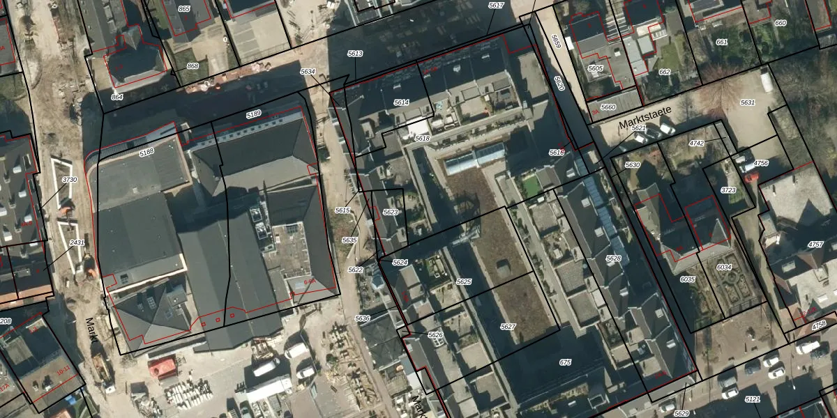 Het perceel waarop Marktstaete 42 staat heeft een oppervlakte van 1567 m². Dit is een zeer groot perceel. De perceeloppervlakte wordt geregistreerd door het Kadaster. Gedetailleerde informatie over de maten van dit perceel kunt u vinden in het rapport Kadastrale kaart met maatvoering van Marktstaete 42.