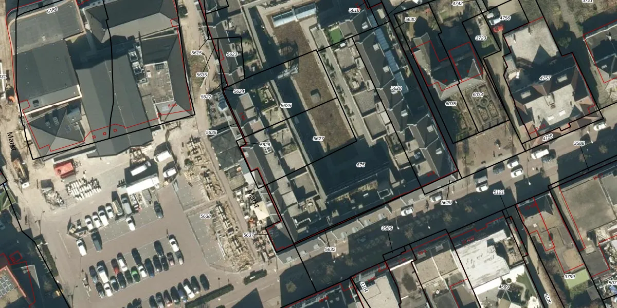 Het perceel waarop Marktstaete 47 staat heeft een oppervlakte van 562 m². Dit is een groot perceel. De perceeloppervlakte wordt geregistreerd door het Kadaster. Gedetailleerde informatie over de maten van dit perceel kunt u vinden in het rapport Kadastrale kaart met maatvoering van Marktstaete 47.