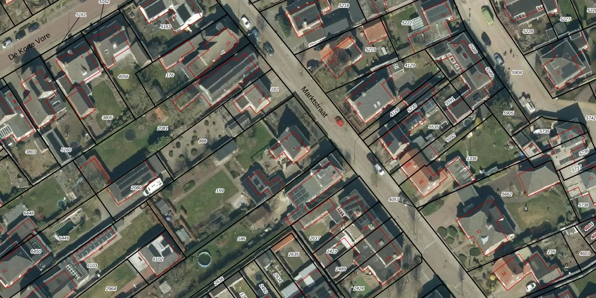 Het perceel waarop Marktstraat 19 staat heeft een oppervlakte van 1433 m². Dit is een zeer groot perceel. De perceeloppervlakte wordt geregistreerd door het Kadaster. Gedetailleerde informatie over de maten van dit perceel kunt u vinden in het rapport Kadastrale kaart met maatvoering van Marktstraat 19.