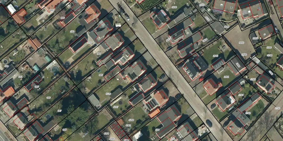 Het perceel waarop Marktstraat 55 staat heeft een oppervlakte van 722 m². Dit is een groot perceel. De perceeloppervlakte wordt geregistreerd door het Kadaster. Gedetailleerde informatie over de maten van dit perceel kunt u vinden in het rapport Kadastrale kaart met maatvoering van Marktstraat 55.