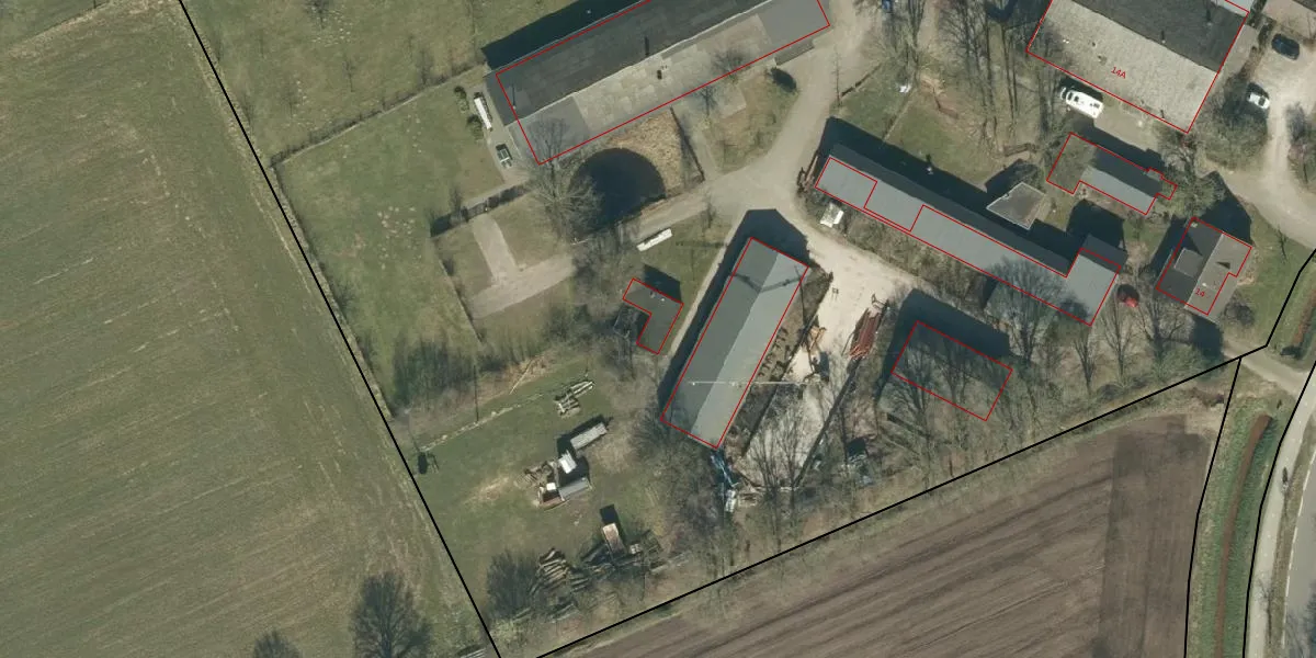Het perceel waarop Molenweg 14-D staat heeft een oppervlakte van 2,1 ha. Dit is een zeer groot perceel. De perceeloppervlakte wordt geregistreerd door het Kadaster. Gedetailleerde informatie over de maten van dit perceel kunt u vinden in het rapport Kadastrale kaart met maatvoering van Molenweg 14-D.
