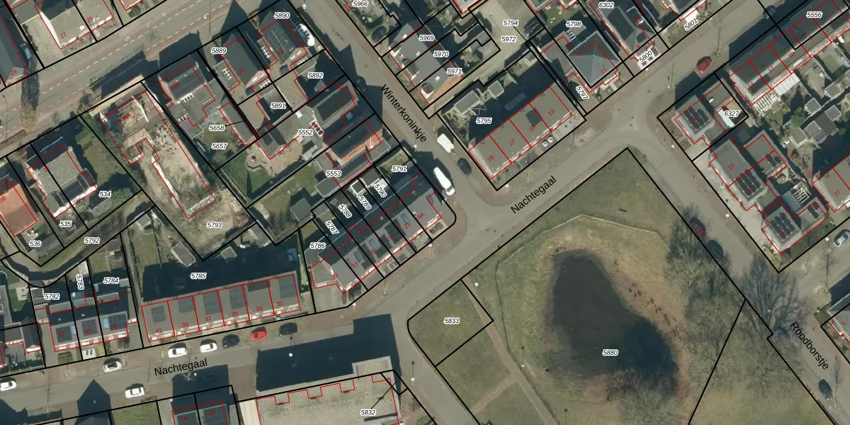 Het perceel waarop Nachtegaal 19-A staat heeft een oppervlakte van 177 m². Dit is een middelgroot perceel. De perceeloppervlakte wordt geregistreerd door het Kadaster. Gedetailleerde informatie over de maten van dit perceel kunt u vinden in het rapport Kadastrale kaart met maatvoering van Nachtegaal 19-A.