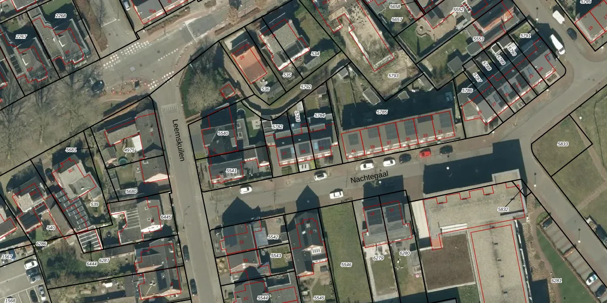 Nachtegaal 45 is gelegen op kadastraal perceel BDL01G5783. Deze kadastrale aanduiding is uniek en wordt gebruikt door het Kadaster om eigendomsrechten en andere zakelijke rechten vast te leggen. Het perceel maakt onderdeel uit van de kadastrale gemeente Bladel.