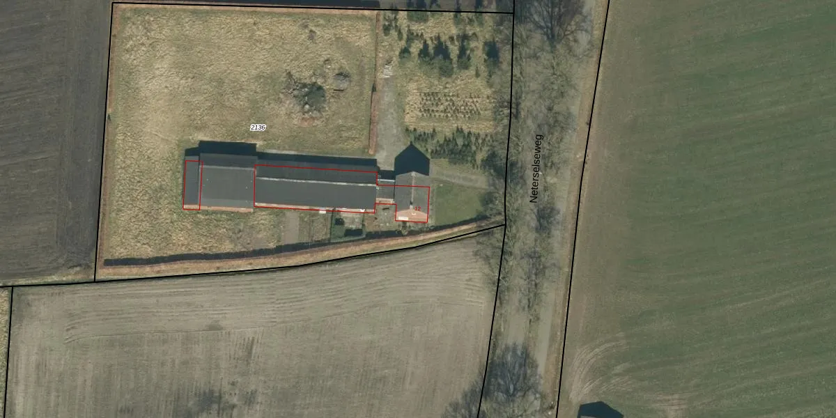 Neterselseweg 12 is gelegen op kadastraal perceel BDL01H2136. Deze kadastrale aanduiding is uniek en wordt gebruikt door het Kadaster om eigendomsrechten en andere zakelijke rechten vast te leggen. Het perceel maakt onderdeel uit van de kadastrale gemeente Bladel.