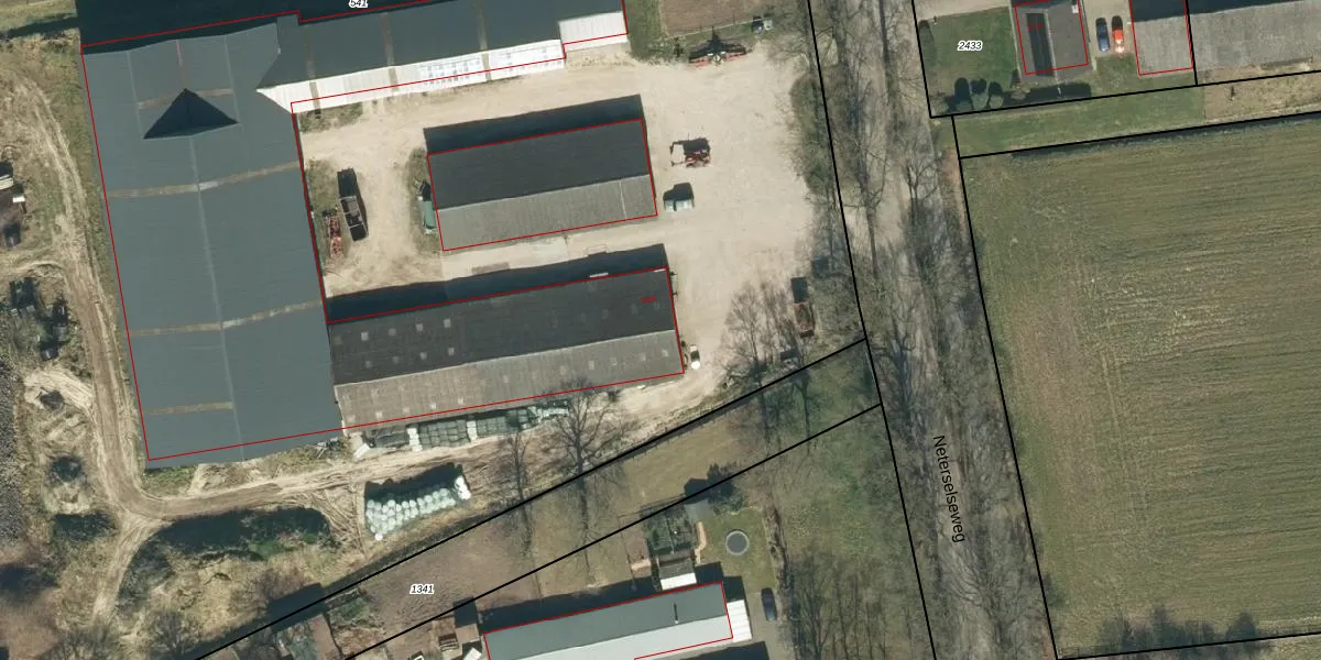 Het perceel waarop Neterselseweg 14-A staat heeft een oppervlakte van 2,2 ha. Dit is een zeer groot perceel. De perceeloppervlakte wordt geregistreerd door het Kadaster. Gedetailleerde informatie over de maten van dit perceel kunt u vinden in het rapport Kadastrale kaart met maatvoering van Neterselseweg 14-A.