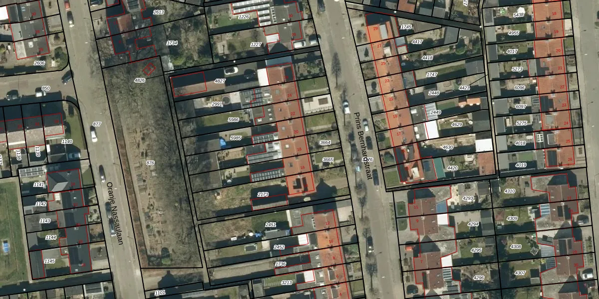 Het perceel waarop Prins Bernhardstraat 18 staat heeft een oppervlakte van 322 m². Dit is een groot perceel. De perceeloppervlakte wordt geregistreerd door het Kadaster. Gedetailleerde informatie over de maten van dit perceel kunt u vinden in het rapport Kadastrale kaart met maatvoering van Prins Bernhardstraat 18.