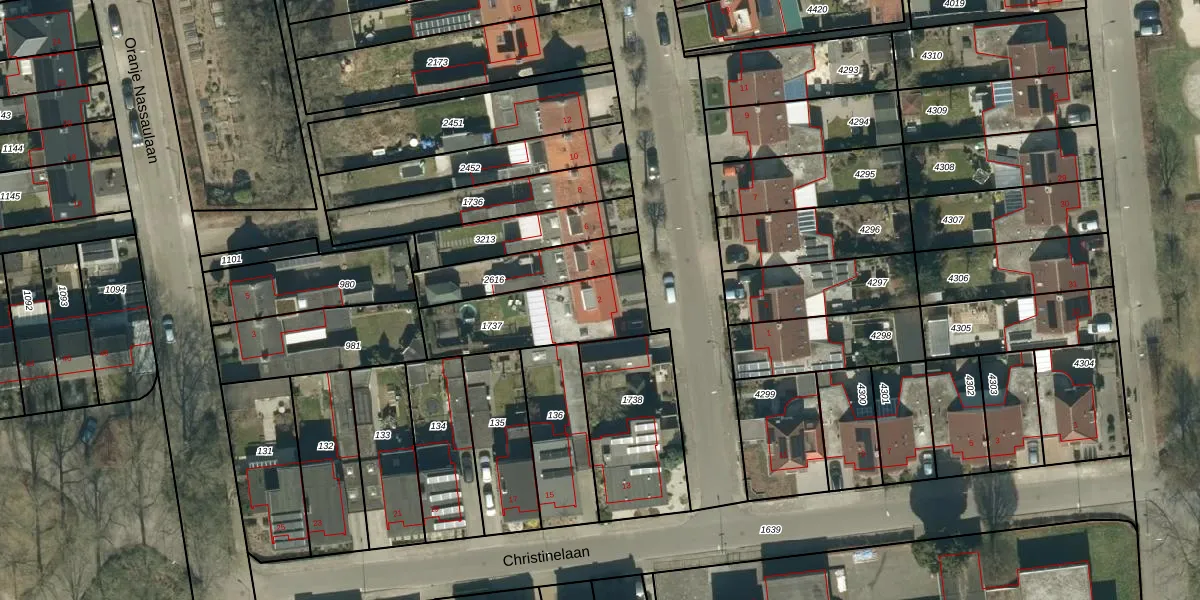Het perceel waarop Prins Bernhardstraat 2 staat heeft een oppervlakte van 365 m². Dit is een groot perceel. De perceeloppervlakte wordt geregistreerd door het Kadaster. Gedetailleerde informatie over de maten van dit perceel kunt u vinden in het rapport Kadastrale kaart met maatvoering van Prins Bernhardstraat 2.