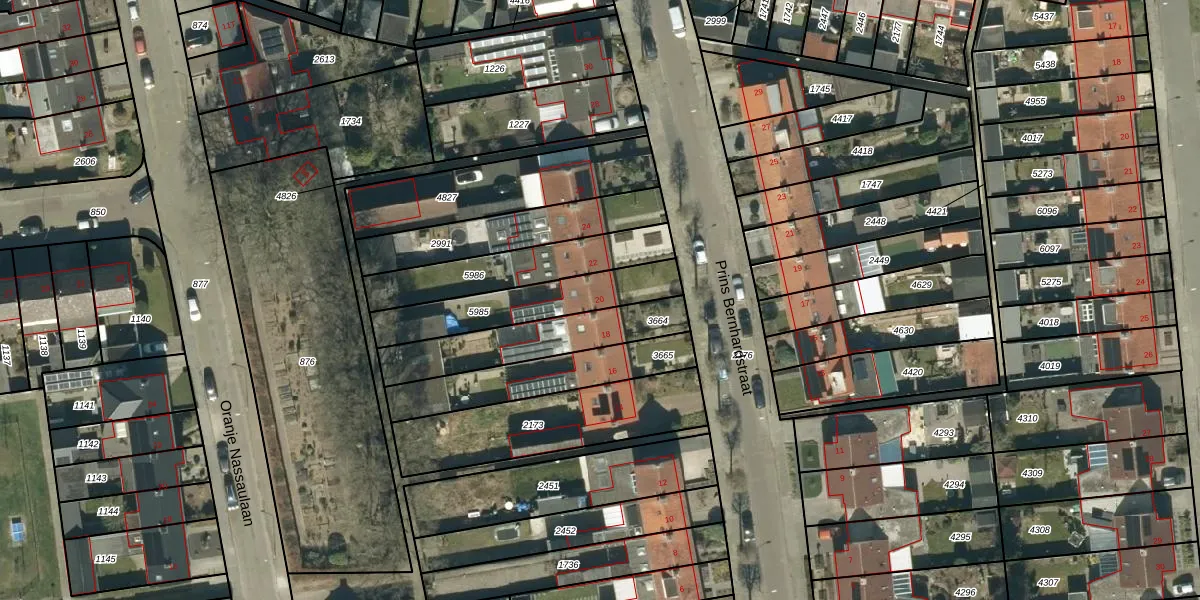Het perceel waarop Prins Bernhardstraat 20 staat heeft een oppervlakte van 318 m². Dit is een groot perceel. De perceeloppervlakte wordt geregistreerd door het Kadaster. Gedetailleerde informatie over de maten van dit perceel kunt u vinden in het rapport Kadastrale kaart met maatvoering van Prins Bernhardstraat 20.