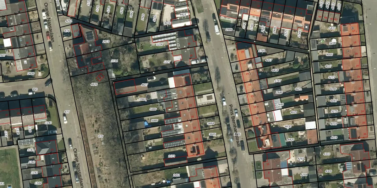 Het perceel waarop Prins Bernhardstraat 24 staat heeft een oppervlakte van 317 m². Dit is een groot perceel. De perceeloppervlakte wordt geregistreerd door het Kadaster. Gedetailleerde informatie over de maten van dit perceel kunt u vinden in het rapport Kadastrale kaart met maatvoering van Prins Bernhardstraat 24.