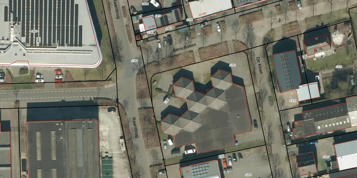 Het perceel waarop Raambrug 38 staat heeft een oppervlakte van 3031 m². Dit is een zeer groot perceel. De perceeloppervlakte wordt geregistreerd door het Kadaster. Gedetailleerde informatie over de maten van dit perceel kunt u vinden in het rapport Kadastrale kaart met maatvoering van Raambrug 38.