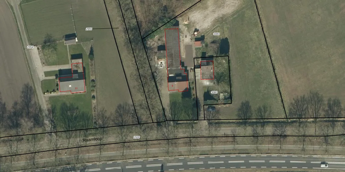 Raamloop 9 is gelegen op kadastraal perceel BDL01H3083. Deze kadastrale aanduiding is uniek en wordt gebruikt door het Kadaster om eigendomsrechten en andere zakelijke rechten vast te leggen. Het perceel maakt onderdeel uit van de kadastrale gemeente Bladel.