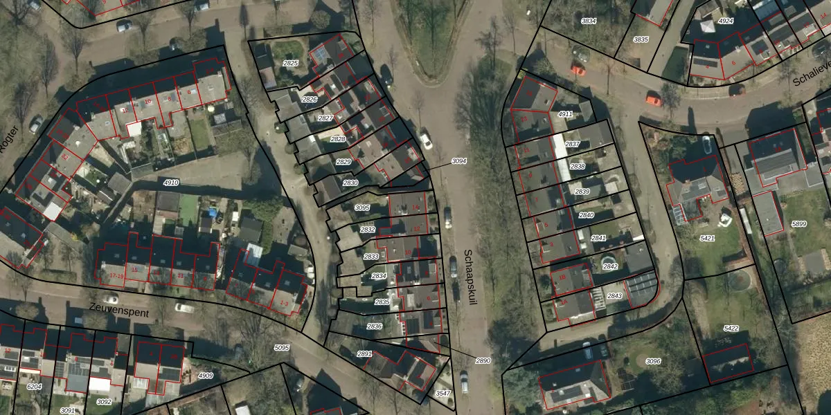 Gebruik de zoekbalk of klik op een perceel voor informatie over de adressen binnen dit perceel.