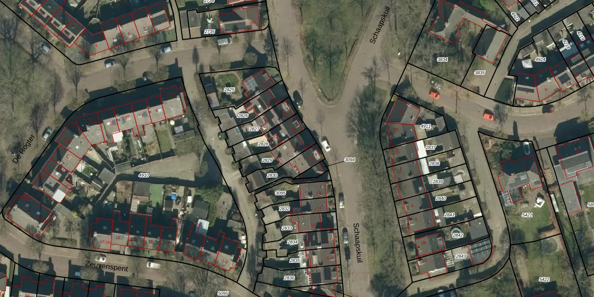 Het perceel waarop Schaapskuil 18 staat heeft een oppervlakte van 154 m². Dit is een middelgroot perceel. De perceeloppervlakte wordt geregistreerd door het Kadaster. Gedetailleerde informatie over de maten van dit perceel kunt u vinden in het rapport Kadastrale kaart met maatvoering van Schaapskuil 18.