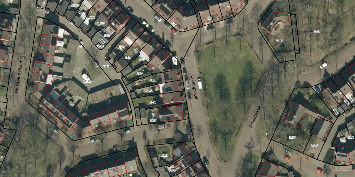 Het perceel waarop Schaapskuil 32 staat heeft een oppervlakte van 169 m². Dit is een middelgroot perceel. De perceeloppervlakte wordt geregistreerd door het Kadaster. Gedetailleerde informatie over de maten van dit perceel kunt u vinden in het rapport Kadastrale kaart met maatvoering van Schaapskuil 32.