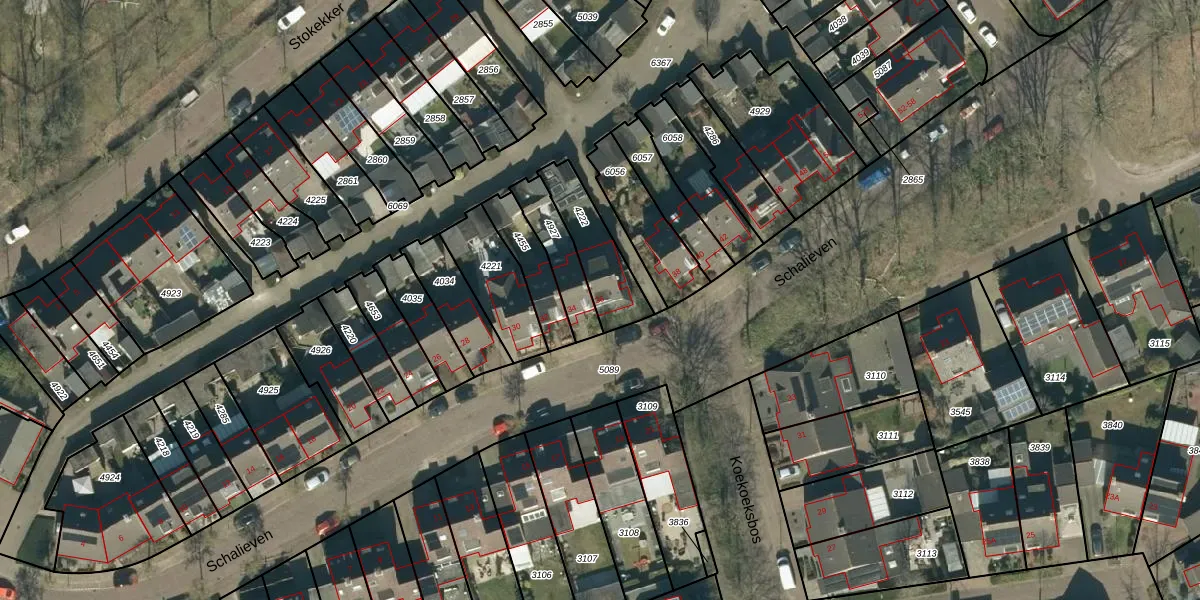 Het perceel waarop Schalieven 36 staat heeft een oppervlakte van 197 m². Dit is een middelgroot perceel. De perceeloppervlakte wordt geregistreerd door het Kadaster. Gedetailleerde informatie over de maten van dit perceel kunt u vinden in het rapport Kadastrale kaart met maatvoering van Schalieven 36.