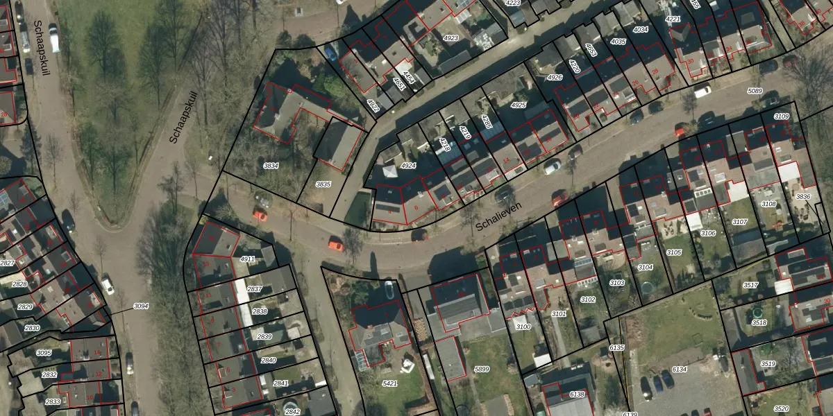 Het perceel waarop Schalieven 6 staat heeft een oppervlakte van 387 m². Dit is een groot perceel. De perceeloppervlakte wordt geregistreerd door het Kadaster. Gedetailleerde informatie over de maten van dit perceel kunt u vinden in het rapport Kadastrale kaart met maatvoering van Schalieven 6.