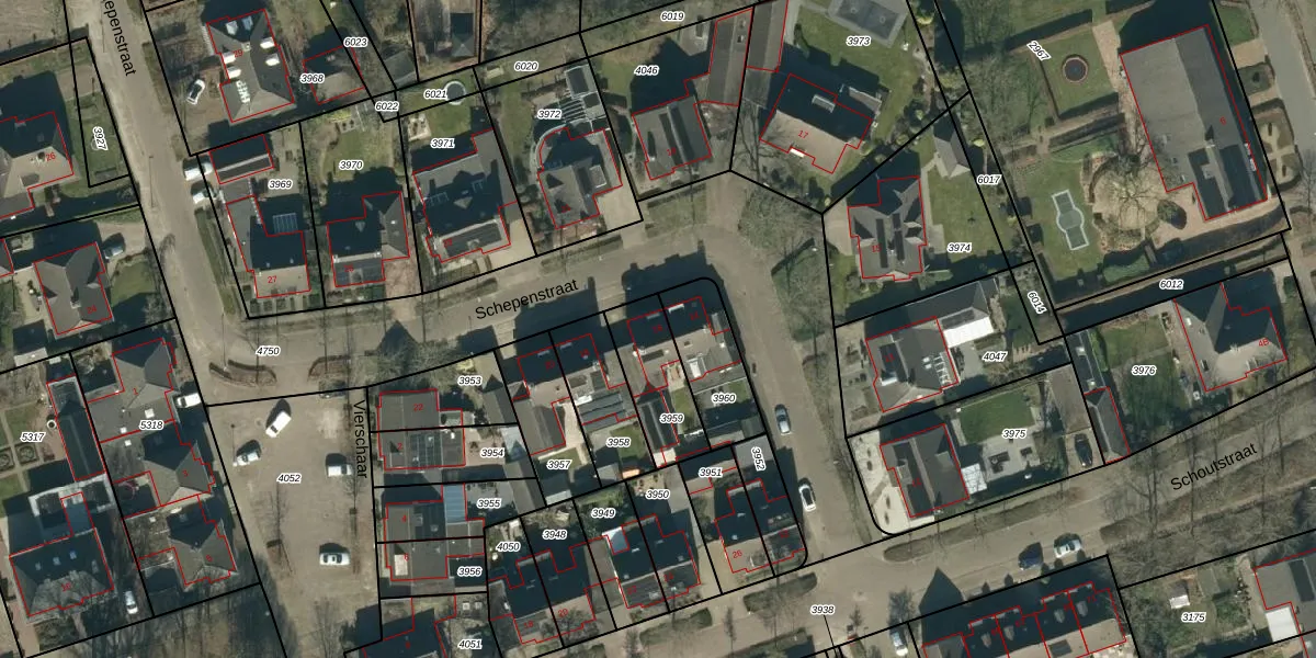 Schepenstraat 16 is gelegen op kadastraal perceel BDL01G3959. Deze kadastrale aanduiding is uniek en wordt gebruikt door het Kadaster om eigendomsrechten en andere zakelijke rechten vast te leggen. Het perceel maakt onderdeel uit van de kadastrale gemeente Bladel.