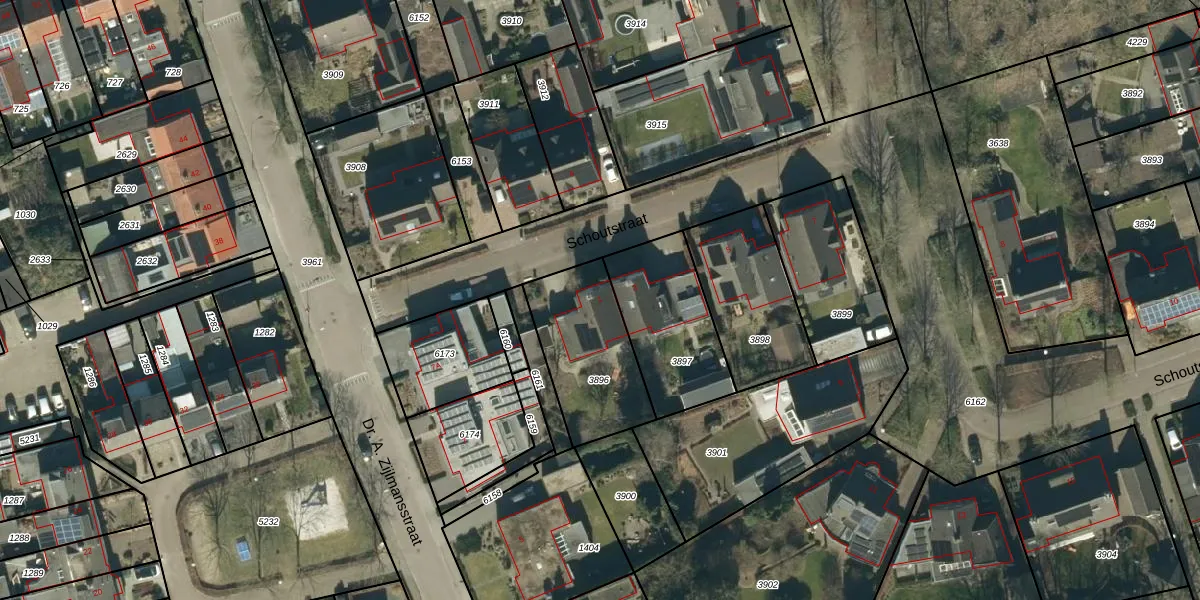 Schoutstraat 1 is gelegen op kadastraal perceel BDL01G3896. Deze kadastrale aanduiding is uniek en wordt gebruikt door het Kadaster om eigendomsrechten en andere zakelijke rechten vast te leggen. Het perceel maakt onderdeel uit van de kadastrale gemeente Bladel.