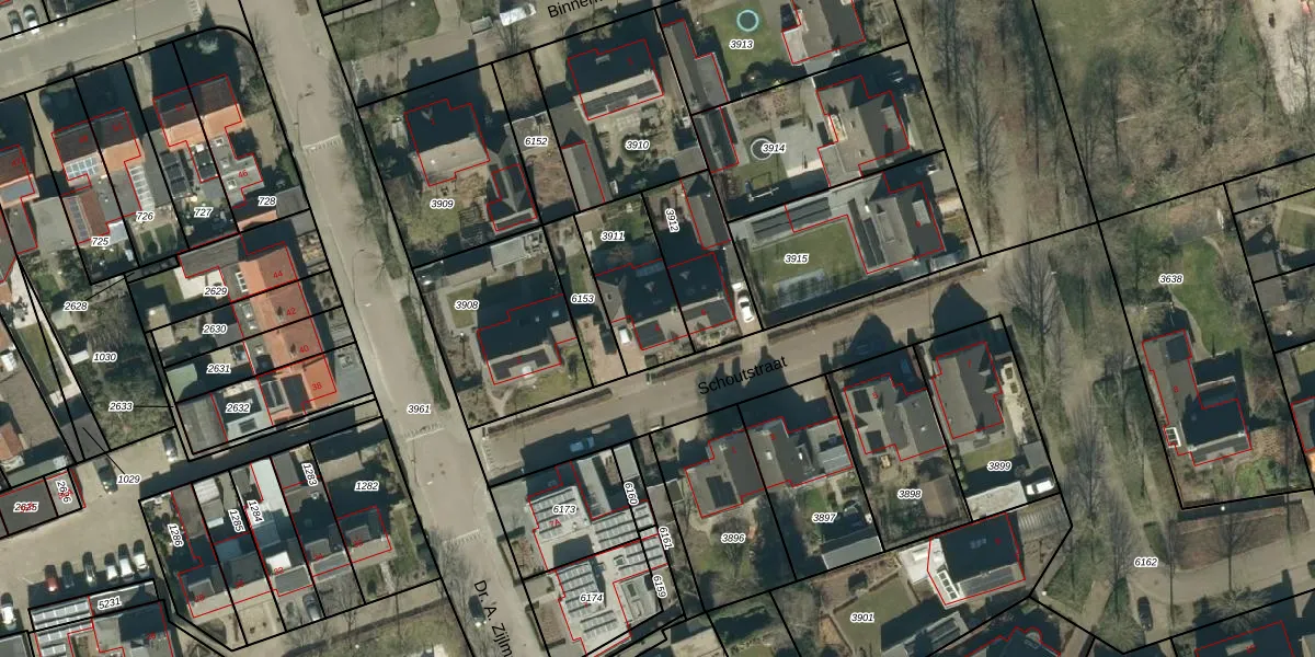Gebruik de zoekbalk of klik op een perceel voor informatie over de adressen binnen dit perceel.