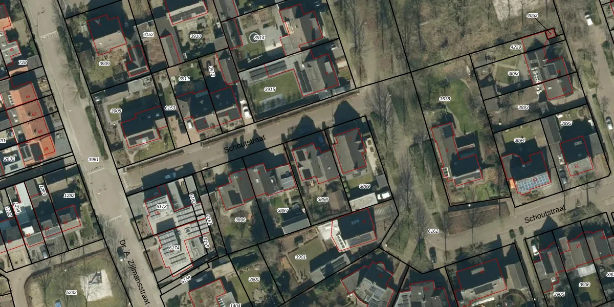 Gebruik de zoekbalk of klik op een perceel voor informatie over de adressen binnen dit perceel.