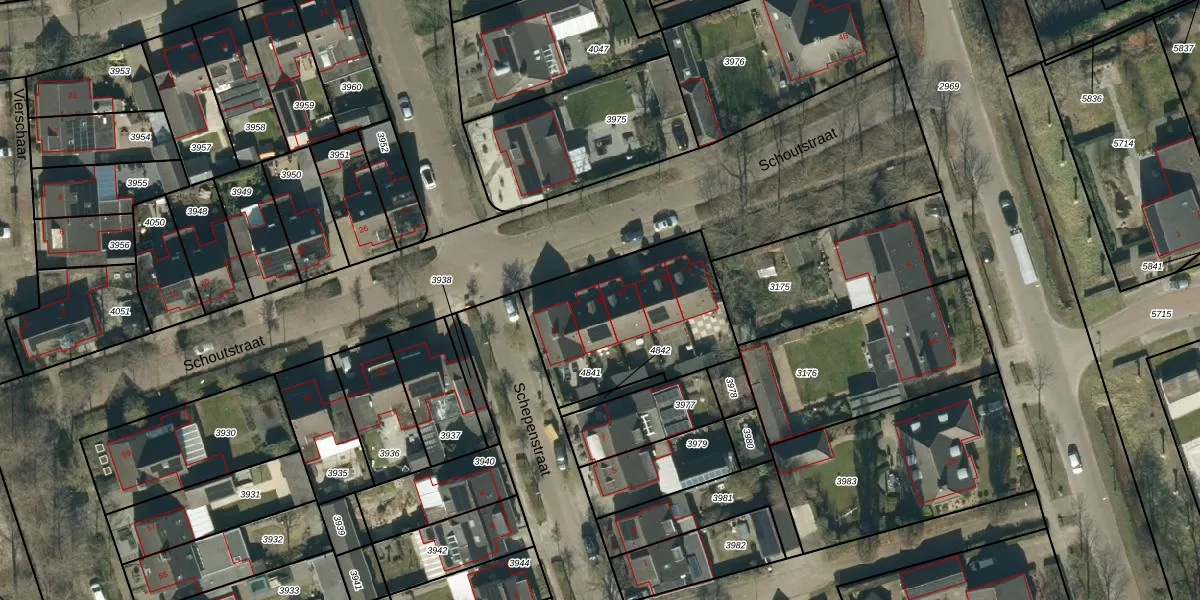 Het perceel waarop Schoutstraat 65 staat heeft een oppervlakte van 675 m². Dit is een groot perceel. De perceeloppervlakte wordt geregistreerd door het Kadaster. Gedetailleerde informatie over de maten van dit perceel kunt u vinden in het rapport Kadastrale kaart met maatvoering van Schoutstraat 65.