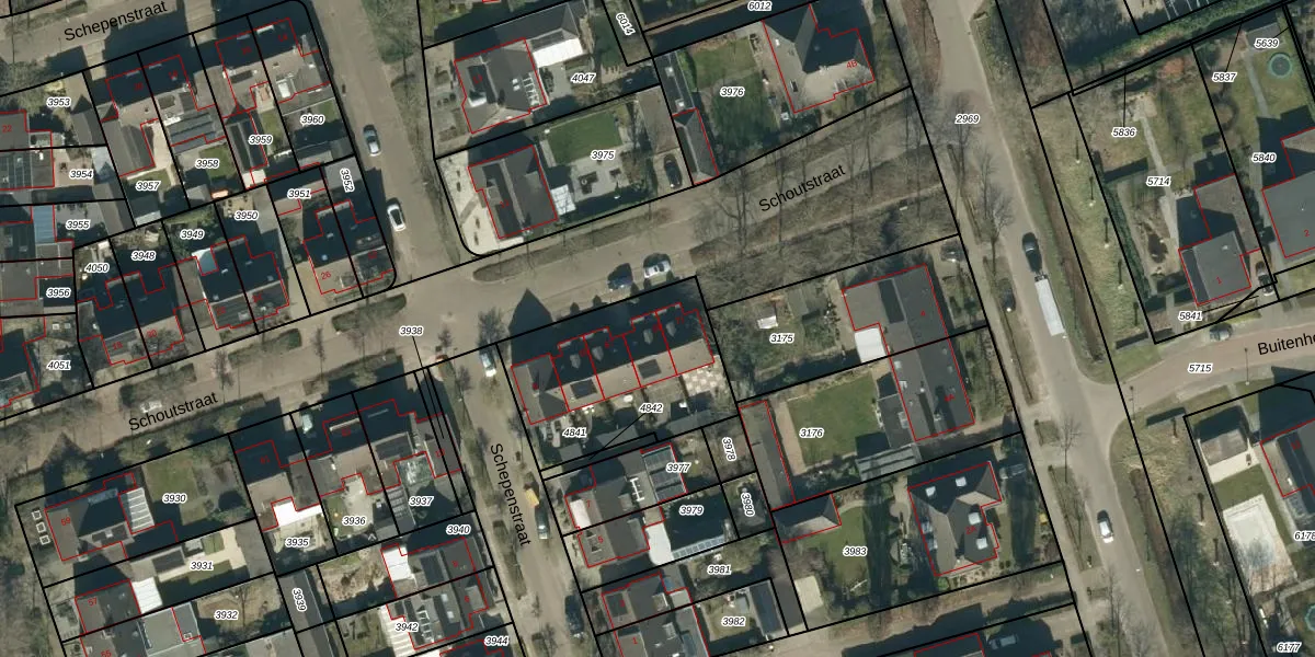Het perceel waarop Schoutstraat 69 staat heeft een oppervlakte van 675 m². Dit is een groot perceel. De perceeloppervlakte wordt geregistreerd door het Kadaster. Gedetailleerde informatie over de maten van dit perceel kunt u vinden in het rapport Kadastrale kaart met maatvoering van Schoutstraat 69.
