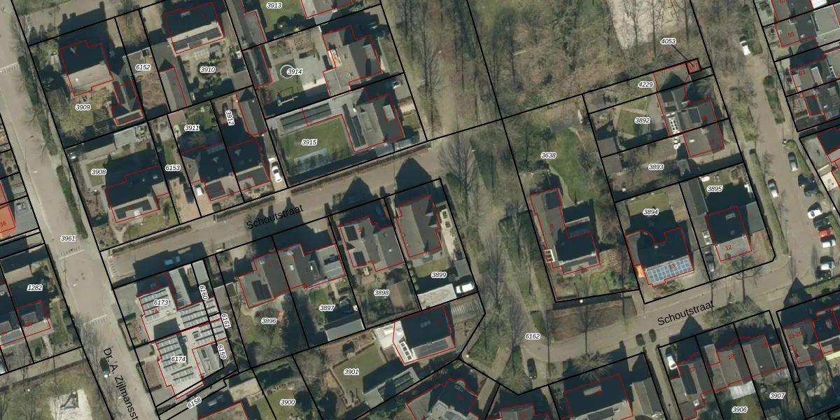 Het perceel waarop Schoutstraat 7 staat heeft een oppervlakte van 402 m². Dit is een groot perceel. De perceeloppervlakte wordt geregistreerd door het Kadaster. Gedetailleerde informatie over de maten van dit perceel kunt u vinden in het rapport Kadastrale kaart met maatvoering van Schoutstraat 7.
