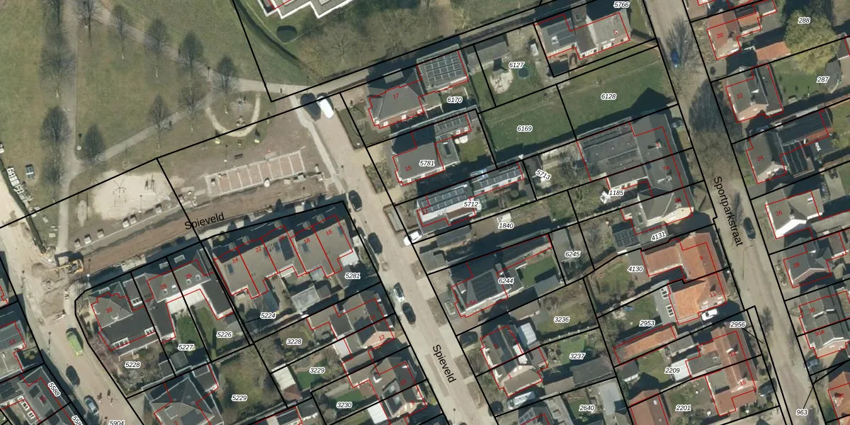 Het perceel waarop Spieveld 13 staat heeft een oppervlakte van 316 m². Dit is een groot perceel. De perceeloppervlakte wordt geregistreerd door het Kadaster. Gedetailleerde informatie over de maten van dit perceel kunt u vinden in het rapport Kadastrale kaart met maatvoering van Spieveld 13.
