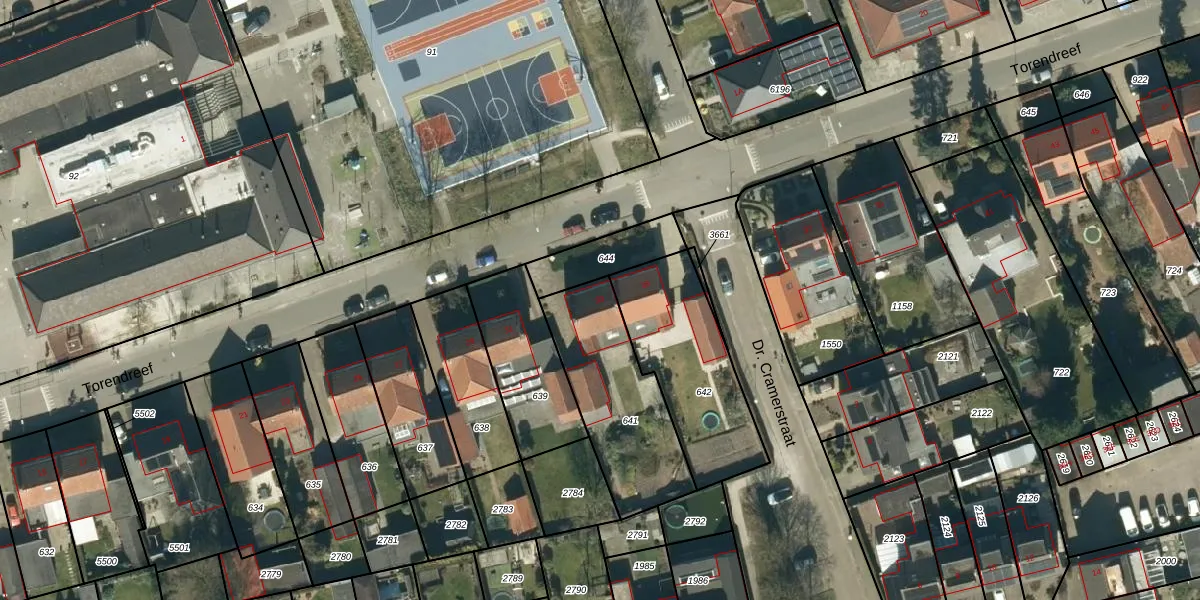 Torendreef 33 is gelegen op kadastraal perceel BDL01G641. Deze kadastrale aanduiding is uniek en wordt gebruikt door het Kadaster om eigendomsrechten en andere zakelijke rechten vast te leggen. Het perceel maakt onderdeel uit van de kadastrale gemeente Bladel.