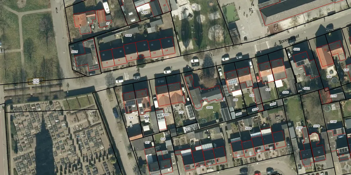 Torendreef 7 is gelegen op kadastraal perceel BDL01G717. Deze kadastrale aanduiding is uniek en wordt gebruikt door het Kadaster om eigendomsrechten en andere zakelijke rechten vast te leggen. Het perceel maakt onderdeel uit van de kadastrale gemeente Bladel.
