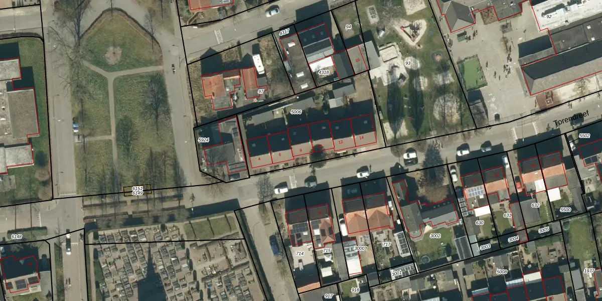 Torendreef 8 is gelegen op kadastraal perceel BDL01G5006. Deze kadastrale aanduiding is uniek en wordt gebruikt door het Kadaster om eigendomsrechten en andere zakelijke rechten vast te leggen. Het perceel maakt onderdeel uit van de kadastrale gemeente Bladel.