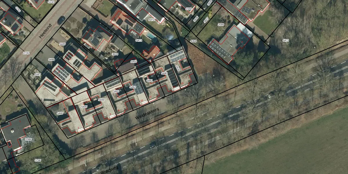 Weideakkers 14 is gelegen op kadastraal perceel BDL01G5440. Deze kadastrale aanduiding is uniek en wordt gebruikt door het Kadaster om eigendomsrechten en andere zakelijke rechten vast te leggen. Het perceel maakt onderdeel uit van de kadastrale gemeente Bladel.