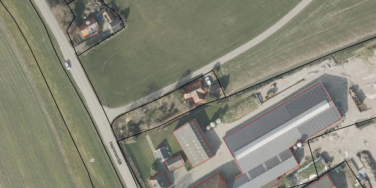 Hammerdijk 9 is gelegen op kadastraal perceel BKH00G19. Deze kadastrale aanduiding is uniek en wordt gebruikt door het Kadaster om eigendomsrechten en andere zakelijke rechten vast te leggen. Het perceel maakt onderdeel uit van de kadastrale gemeente Blankenham.