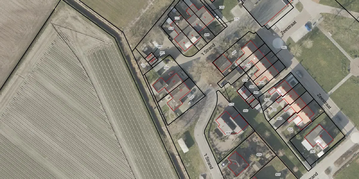 Het perceel waarop 't Strand 12 staat heeft een oppervlakte van 340 m². Dit is een groot perceel. De perceeloppervlakte wordt geregistreerd door het Kadaster. Gedetailleerde informatie over de maten van dit perceel kunt u vinden in het rapport Kadastrale kaart met maatvoering van 't Strand 12.