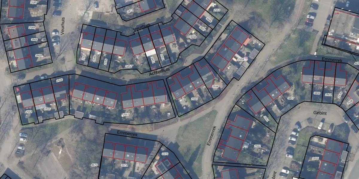 Het perceel waarop Achterhuis 15 staat heeft een oppervlakte van 442 m². Dit is een groot perceel. De perceeloppervlakte wordt geregistreerd door het Kadaster. Gedetailleerde informatie over de maten van dit perceel kunt u vinden in het rapport Kadastrale kaart met maatvoering van Achterhuis 15.