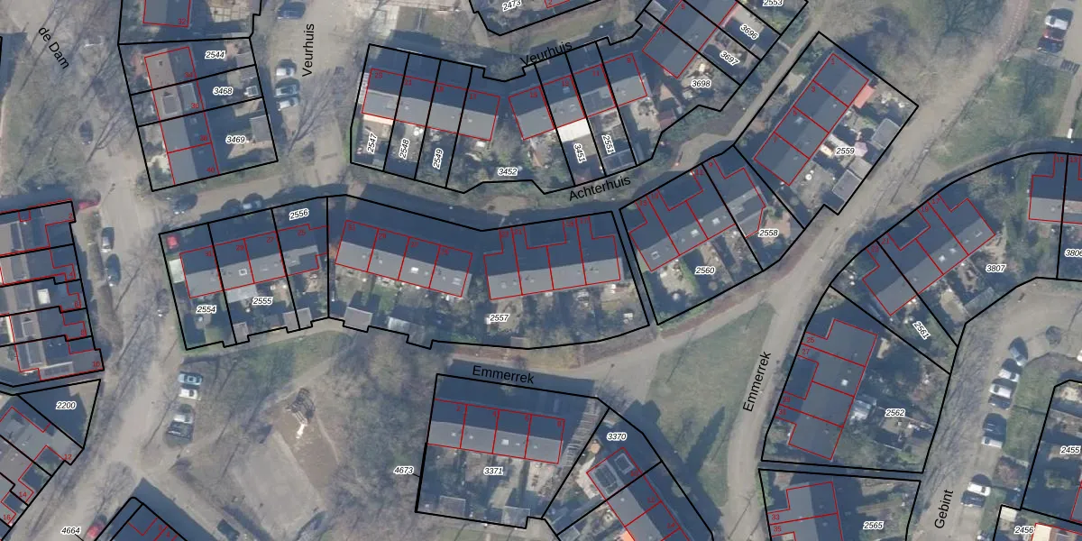 Het perceel waarop Achterhuis 21 staat heeft een oppervlakte van 1286 m². Dit is een zeer groot perceel. De perceeloppervlakte wordt geregistreerd door het Kadaster. Gedetailleerde informatie over de maten van dit perceel kunt u vinden in het rapport Kadastrale kaart met maatvoering van Achterhuis 21.