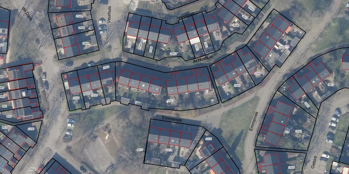 Het perceel waarop Achterhuis 23 staat heeft een oppervlakte van 1286 m². Dit is een zeer groot perceel. De perceeloppervlakte wordt geregistreerd door het Kadaster. Gedetailleerde informatie over de maten van dit perceel kunt u vinden in het rapport Kadastrale kaart met maatvoering van Achterhuis 23.