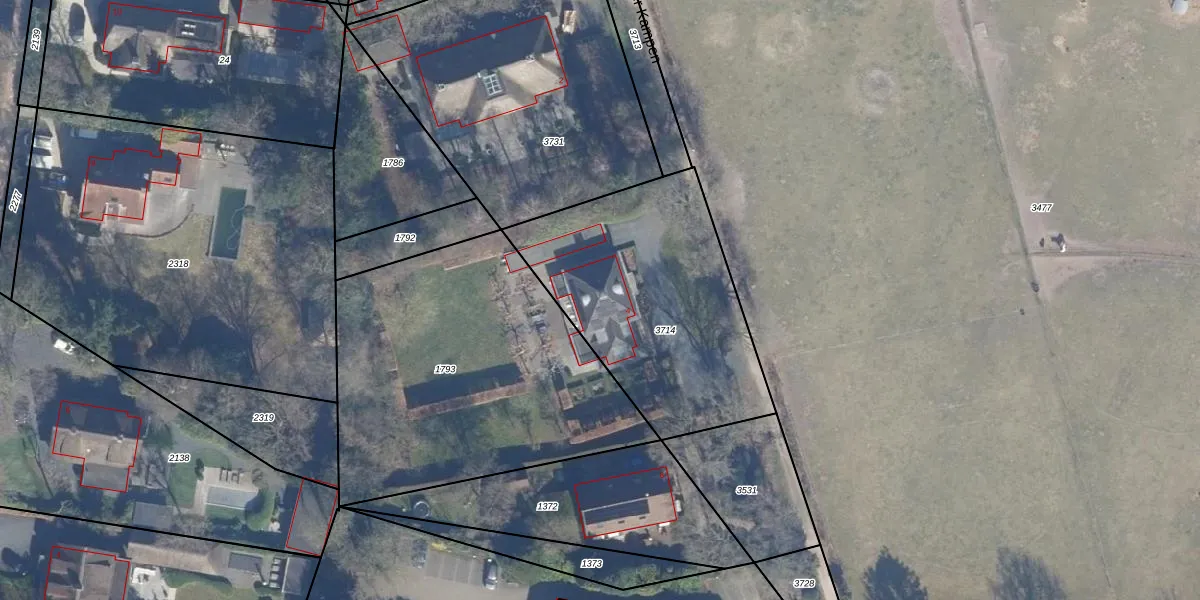 Het adres ligt op het perceel BRC00-B-3714, dat zich in de kadastrale gemeente Blaricum bevindt. Het perceel is 1090 m² groot. Dat is kleiner dan de gemiddelde perceeloppervlakte in Blaricum, dat op 2167,82 m² ligt. Het grootste perceel in de kadastrale gemeente is 3,41 km². Het kleinste perceel heeft een oppervlakte van 0 m². Dit is het enige adres dat aanwezig is op het perceel. In de Basisregistratie Kadaster (BRK) werden de grenzen van het perceel geregistreerd op 18-10-1999.