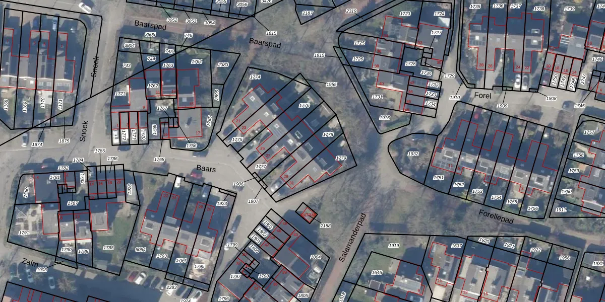 Het perceel waarop Baars 29 staat heeft een oppervlakte van 196 m². Dit is een middelgroot perceel. De perceeloppervlakte wordt geregistreerd door het Kadaster. Gedetailleerde informatie over de maten van dit perceel kunt u vinden in het rapport Kadastrale kaart met maatvoering van Baars 29.