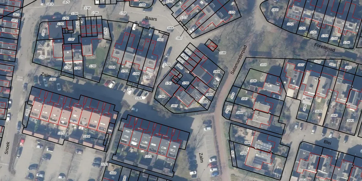 Het perceel waarop Baars 34 staat heeft een oppervlakte van 190 m². Dit is een middelgroot perceel. De perceeloppervlakte wordt geregistreerd door het Kadaster. Gedetailleerde informatie over de maten van dit perceel kunt u vinden in het rapport Kadastrale kaart met maatvoering van Baars 34.