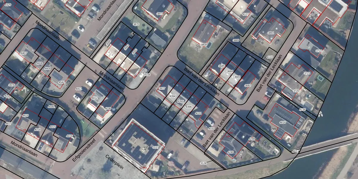 Gebruik de zoekbalk of klik op een perceel voor informatie over de adressen binnen dit perceel.