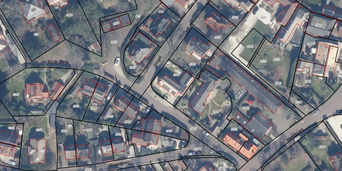 Gebruik de zoekbalk of klik op een perceel voor informatie over de adressen binnen dit perceel.