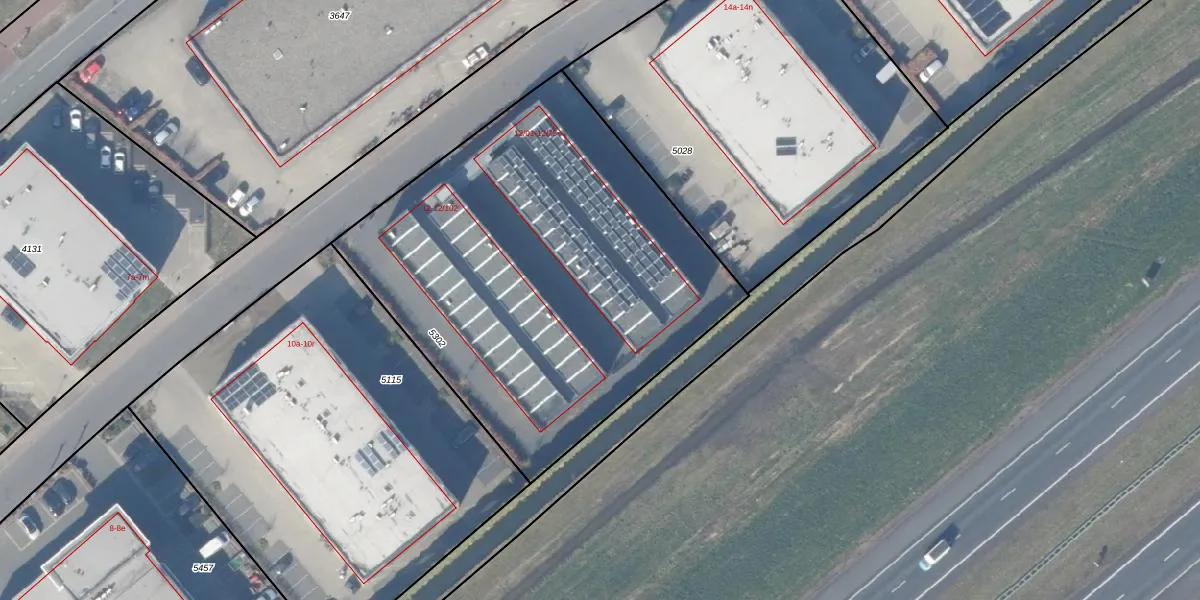 Het perceel waarop Binnendelta 12-15 staat heeft een oppervlakte van 2430 m². Dit is een zeer groot perceel. De perceeloppervlakte wordt geregistreerd door het Kadaster. Gedetailleerde informatie over de maten van dit perceel kunt u vinden in het rapport Kadastrale kaart met maatvoering van Binnendelta 12-15.