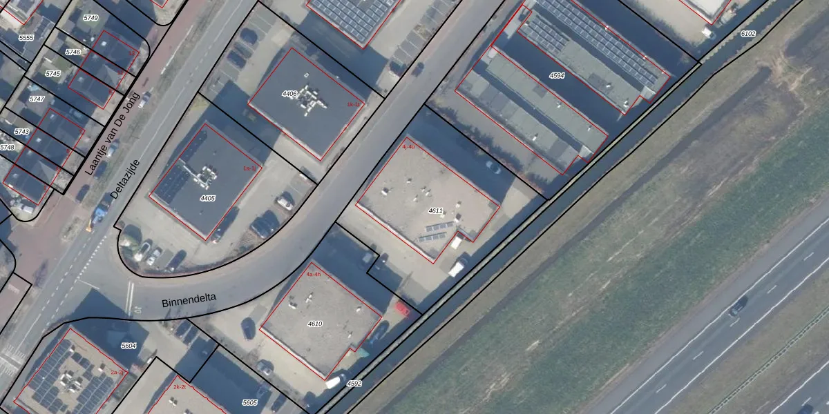 Het perceel waarop Binnendelta 4-l staat heeft een oppervlakte van 1320 m². Dit is een zeer groot perceel. De perceeloppervlakte wordt geregistreerd door het Kadaster. Gedetailleerde informatie over de maten van dit perceel kunt u vinden in het rapport Kadastrale kaart met maatvoering van Binnendelta 4-l.