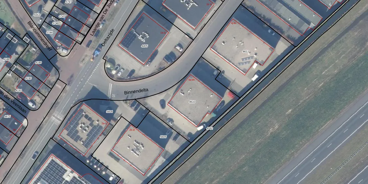 Het perceel waarop Binnendelta 4-a staat heeft een oppervlakte van 1185 m². Dit is een zeer groot perceel. De perceeloppervlakte wordt geregistreerd door het Kadaster. Gedetailleerde informatie over de maten van dit perceel kunt u vinden in het rapport Kadastrale kaart met maatvoering van Binnendelta 4-a.