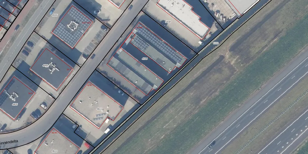 Het perceel waarop Binnendelta 6-19 staat heeft een oppervlakte van 2050 m². Dit is een zeer groot perceel. De perceeloppervlakte wordt geregistreerd door het Kadaster. Gedetailleerde informatie over de maten van dit perceel kunt u vinden in het rapport Kadastrale kaart met maatvoering van Binnendelta 6-19.