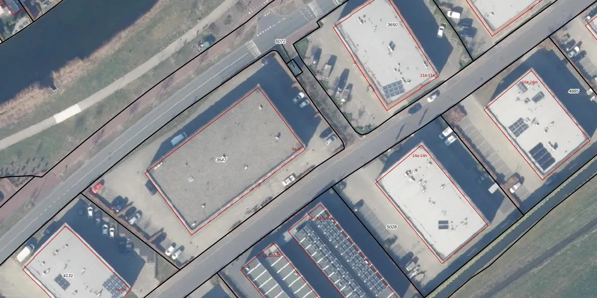 Het perceel waarop Binnendelta 9-h staat heeft een oppervlakte van 3110 m². Dit is een zeer groot perceel. De perceeloppervlakte wordt geregistreerd door het Kadaster. Gedetailleerde informatie over de maten van dit perceel kunt u vinden in het rapport Kadastrale kaart met maatvoering van Binnendelta 9-h.