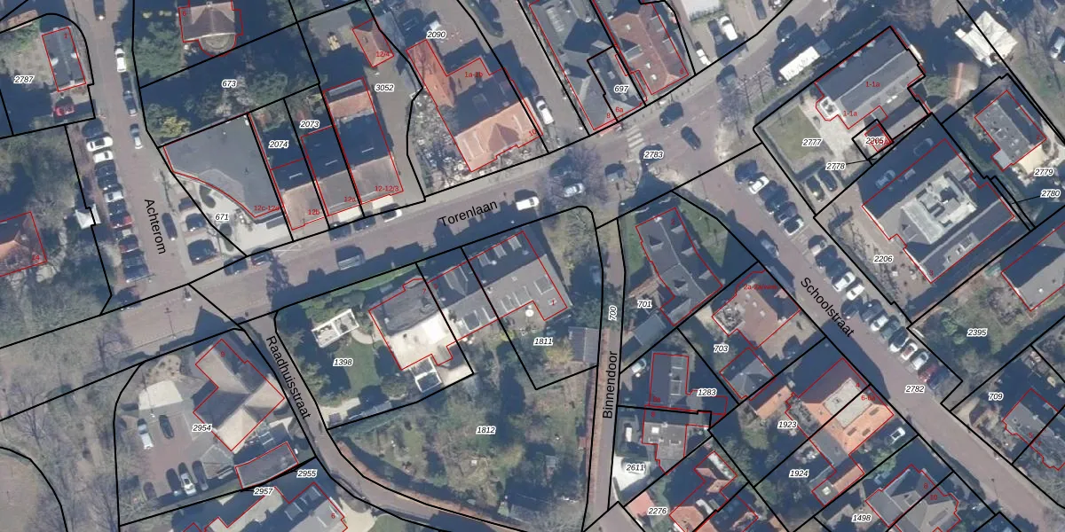 Het perceel waarop Binnendoor 1 staat heeft een oppervlakte van 590 m². Dit is een groot perceel. De perceeloppervlakte wordt geregistreerd door het Kadaster. Gedetailleerde informatie over de maten van dit perceel kunt u vinden in het rapport Kadastrale kaart met maatvoering van Binnendoor 1.